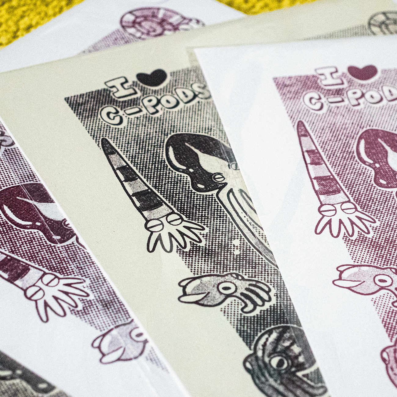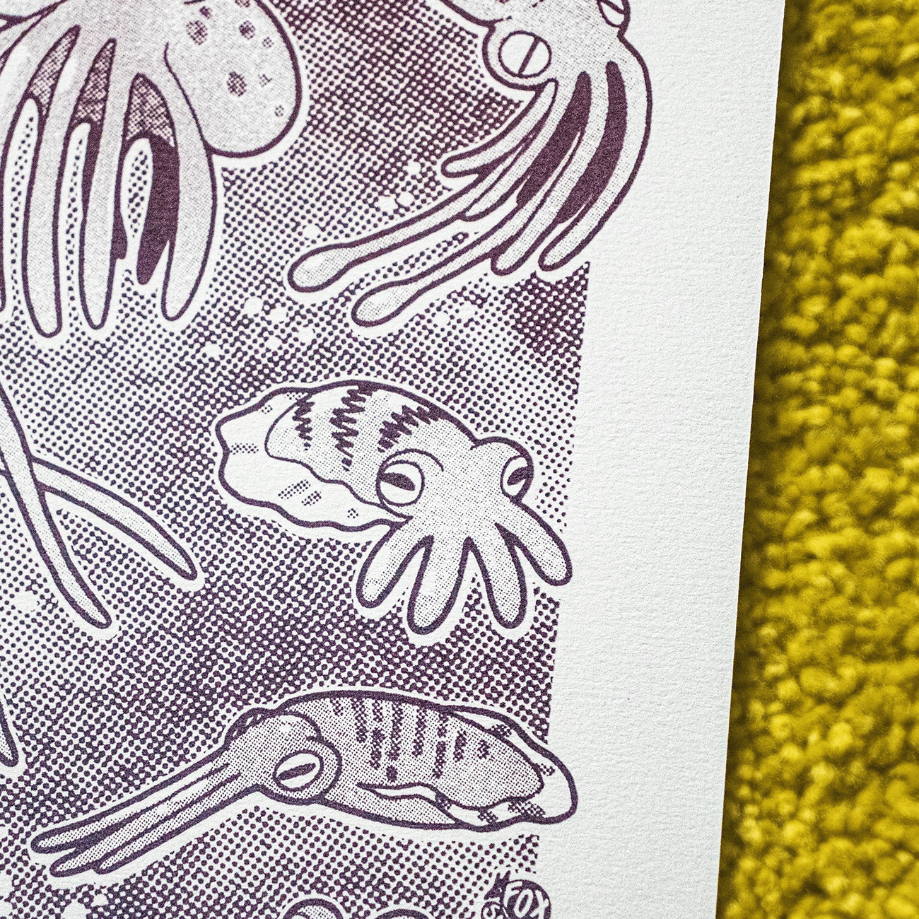 Screen printing is a traditional printing method, each colour is hand-printed one at a time, so each print is unique! some may be more misaligned than others, and some may have small speckles of ink where it wasn't intended, that's all part of the charm of traditional prints!